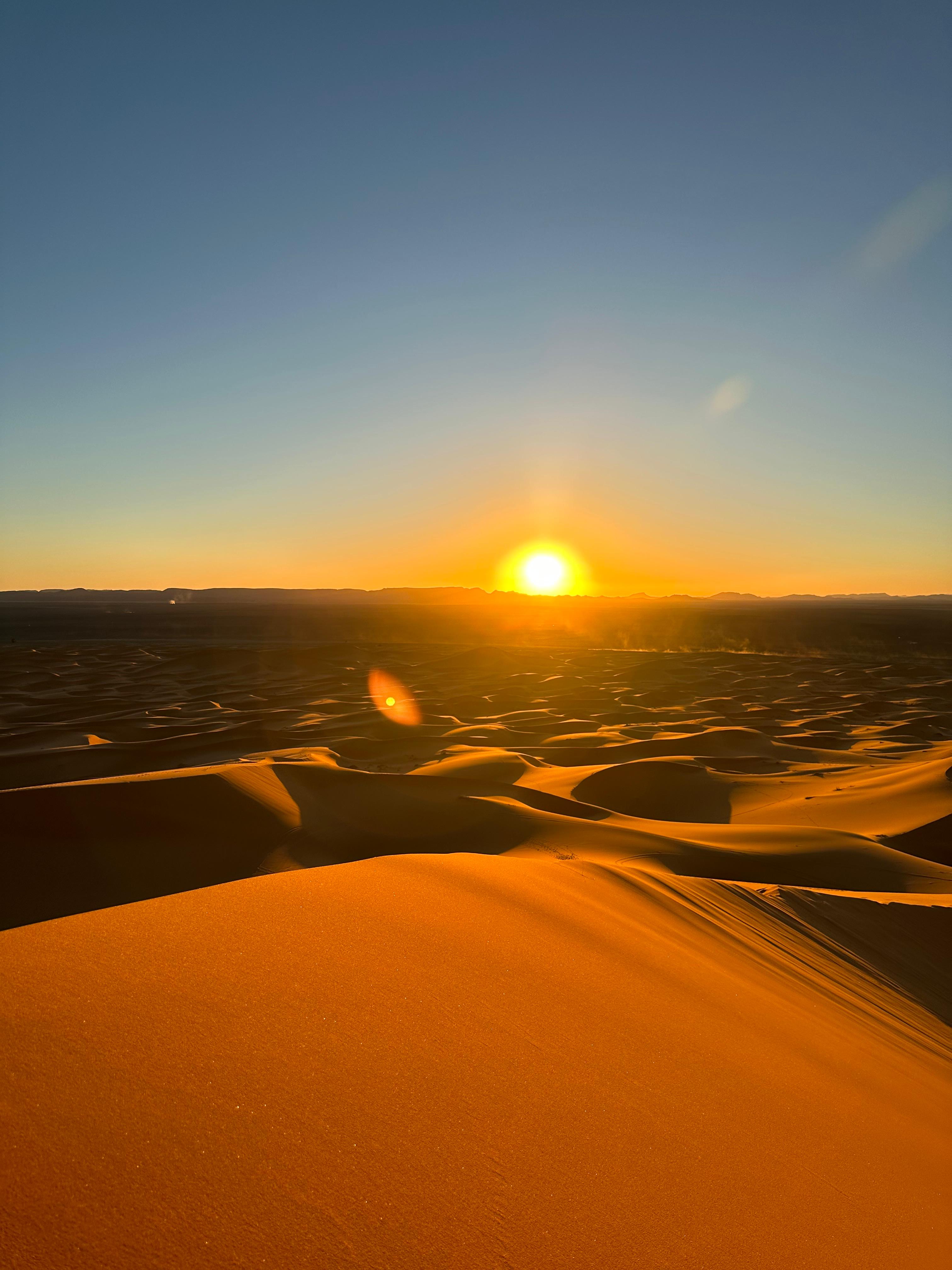Vous admirerez le coucher de soleil et le lever au petit matin sur les dunes, en sentant les rayons du soleil vous réchauffer.